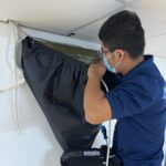 • Bước 3: Dùng bạt chuyên dụng để che tách phần dàn và bo mạch đồng thời lắp máng hứng chất bẩn