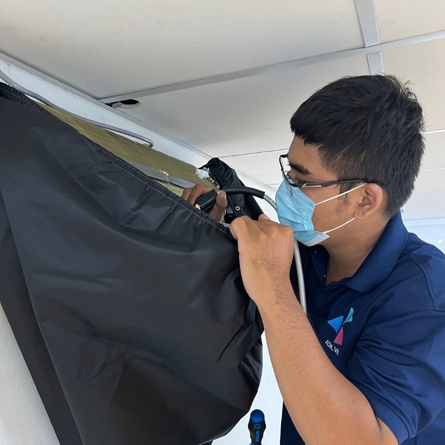• Bước 10: Kỹ thuật viên AOK sẽ thu dọn máy móc, dụng cụ và dọn dẹp sạch sẽ nơi vệ sinh máy lạnh của quý khách